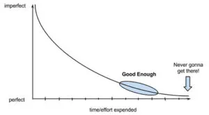 This is why, in contrasting perfectionism with behavior good enough for the job at hand, it’s critical to add the caveat I’m describing. Although almost all the literature on perfectionism rightly conveys a strongly negative bias toward it, it’s yet essential to point out that “good enough” simply isn’t good enough in certain circumstances. So in evaluating how well you might be required to do something—or even whether you’re adequately qualified to do it—you need first to carefully assess just how good in this or that case “good enough” really is.
